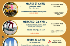 Dates : Du lundi 20 au vendredi 24 avril 2026. Horaires : De 7h30 à 15h00 (retour à 16h30 le jeudi).