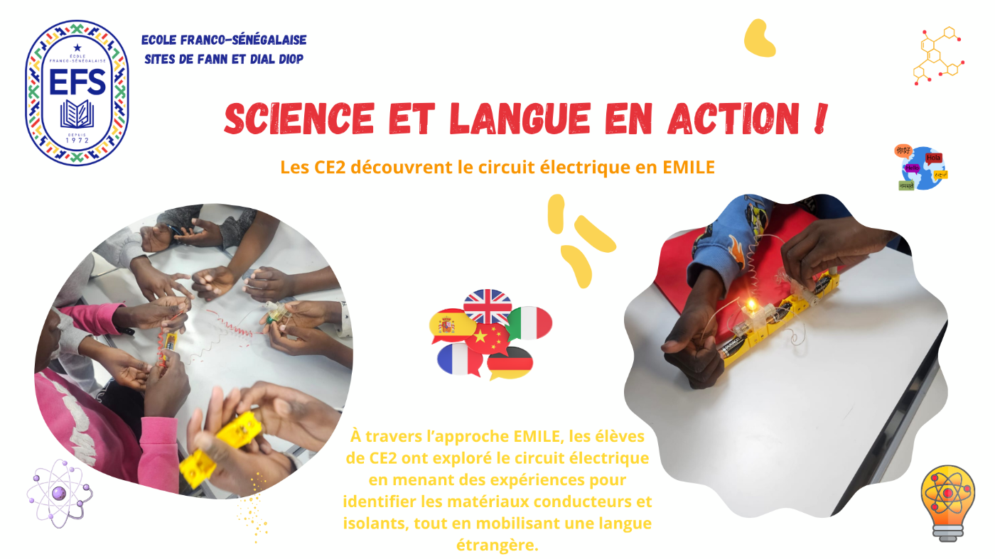 À travers des expériences concrètes, les élèves ont exploré le circuit électrique en manipulant, testant et observant. Ils ont appris à identifier les matériaux conducteurs et isolants, tout en mobilisant une langue étrangère 🗣️⚡