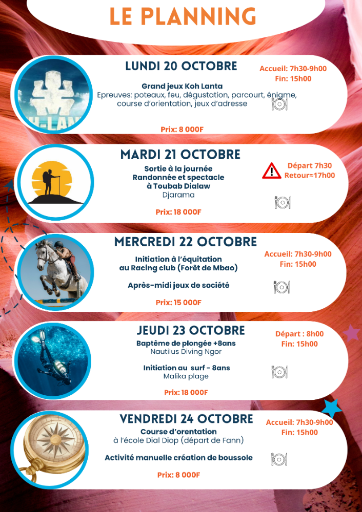 🍎 Les élèves inscrits bénéficieront d’une collation (le matin) et d’un repas, inclus dans le tarif d’inscription.