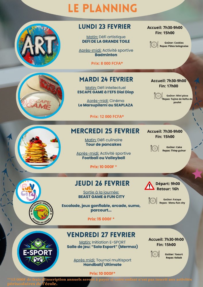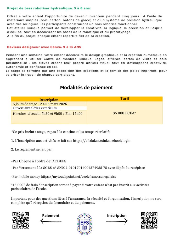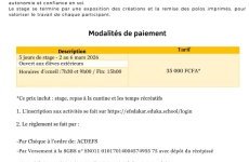 💰 Tarif stage 5 jours : 35 000 FCFA (repas inclus)