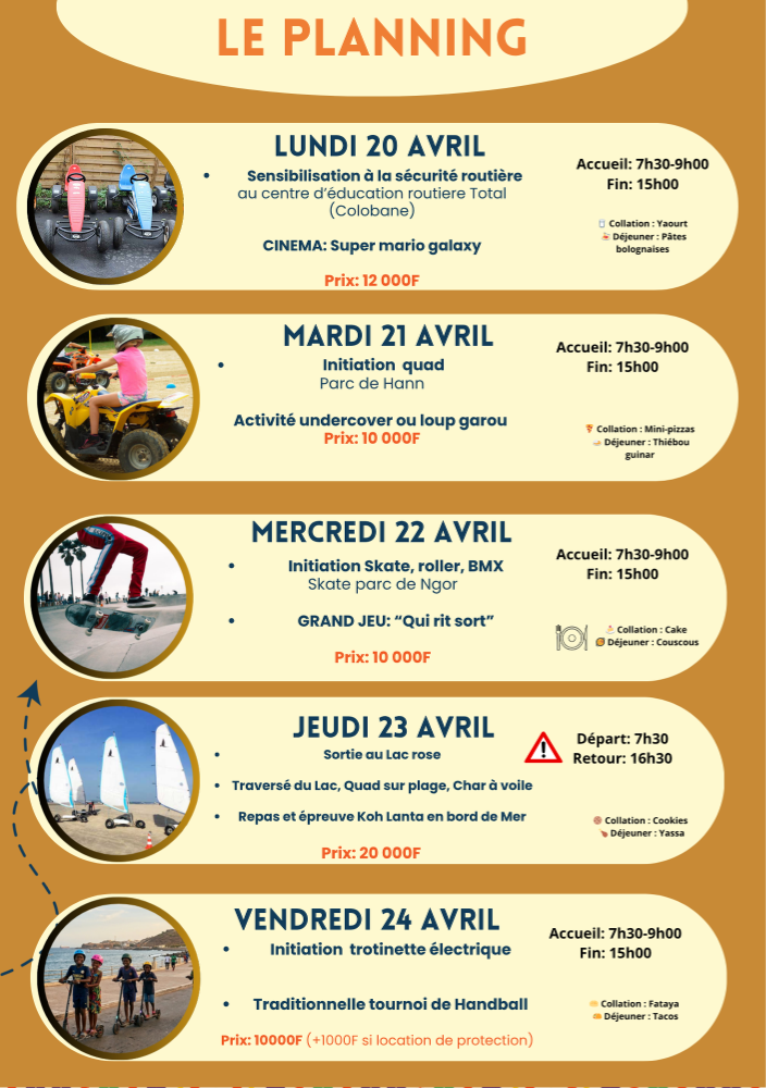 L’École Franco-Sénégalaise a le plaisir de vous présenter le programme des activités périscolaires pour les vacances d’avril 2026 sur le site de Fann !